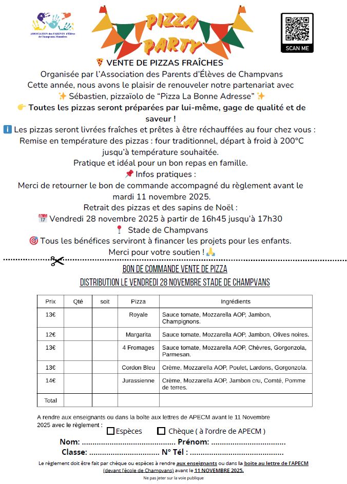 🍕 Vente de pizzas fraîches – APECM 🍕