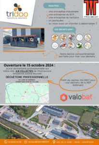 Tridoo, est une déchetterie professionnelle ouverte du lundi au vendredi non-stop de 7h à 19h